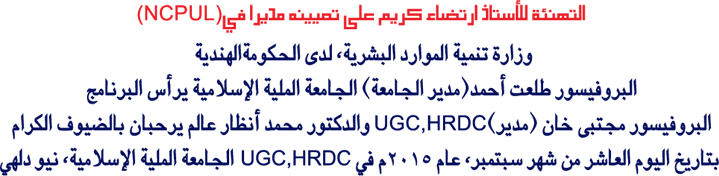 تحت رعایۃ المجلس القومي لترویج اللغۃ الأردیۃ، وزارۃ تنمیۃ الموارد البشریۃ، حکومۃ الھند